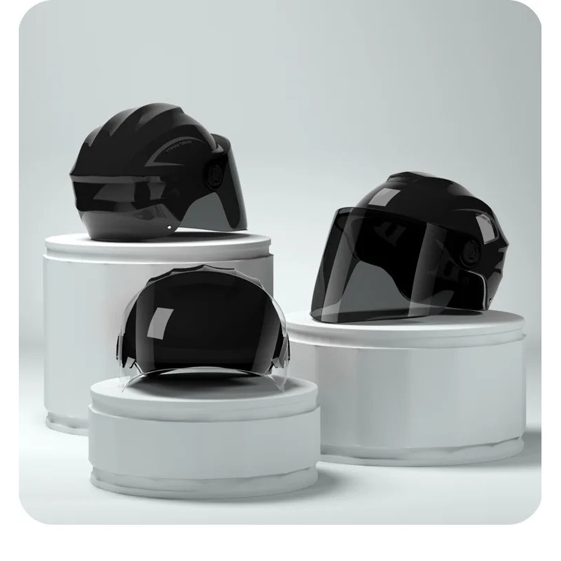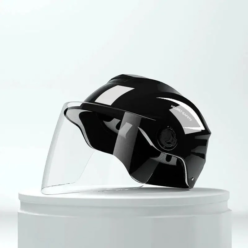 Viziera panoramica transparenta asigura o protectie optima impotriva vantului, ploii, prafului si razelor solare, oferind in acelasi timp un camp vizual larg.
