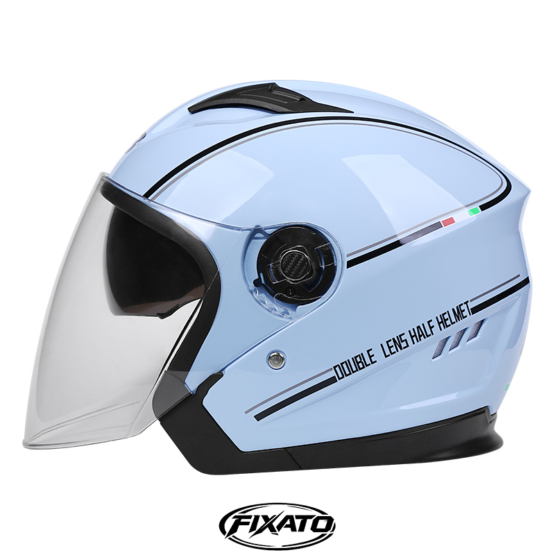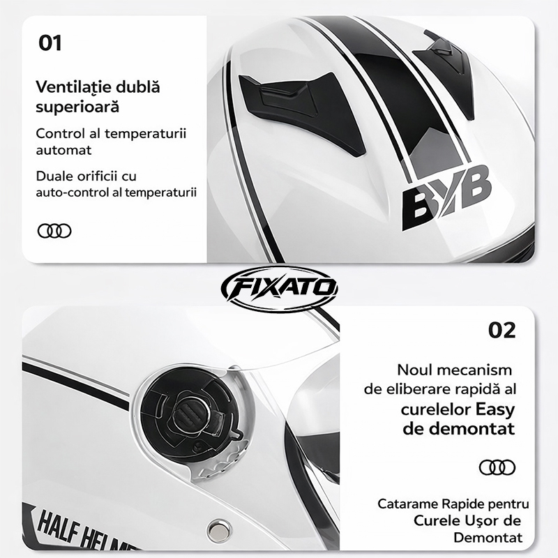 Casca moto/scuter FIXATO Italia este alegerea ideală pentru cei care își doresc confort, stil modern și funcționalitate într-un singur produs. Designul open-face oferă libertate de mișcare și vizibilitate excelentă în trafic, fiind perfect pentru deplasările urbane zilnice. Sistemul cu vizieră dublă îți permite să adaptezi rapid vizibilitatea în funcție de lumină, iar finisajele atent realizate oferă un aspect premium. Interiorul este conceput pentru confort sporit, cu pernițe moi și detașabile, ușor de întreținut. Sistemul de ventilație optimizează circulația aerului, contribuind la o experiență plăcută chiar și în zilele călduroase. În plus, sistemul de închidere rapidă face utilizarea zilnică simplă și eficientă.