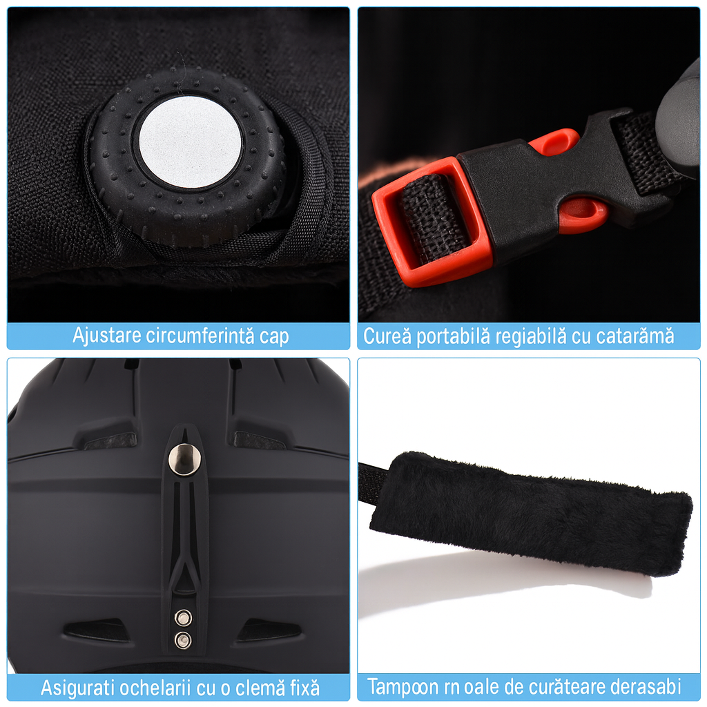 Sistemul de ajustare a circumferintei capului permite o fixare perfecta, in timp ce captuseala interioara si protectiile pentru urechi sunt detasabile si usor de curatat. Cele 14 orificii de ventilatie asigura o circulatie optima a aerului, mentinand confortul termic in timpul activitatilor intense.