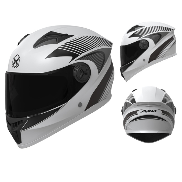 Casca este realizată din policarbonat ABS, oferind protecție și durabilitate. Dispune de vizieră dublă – lentilă exterioară transparentă și lentilă interioară fumurie cu protecție UV, ideală pentru condus în condiții de soare puternic.